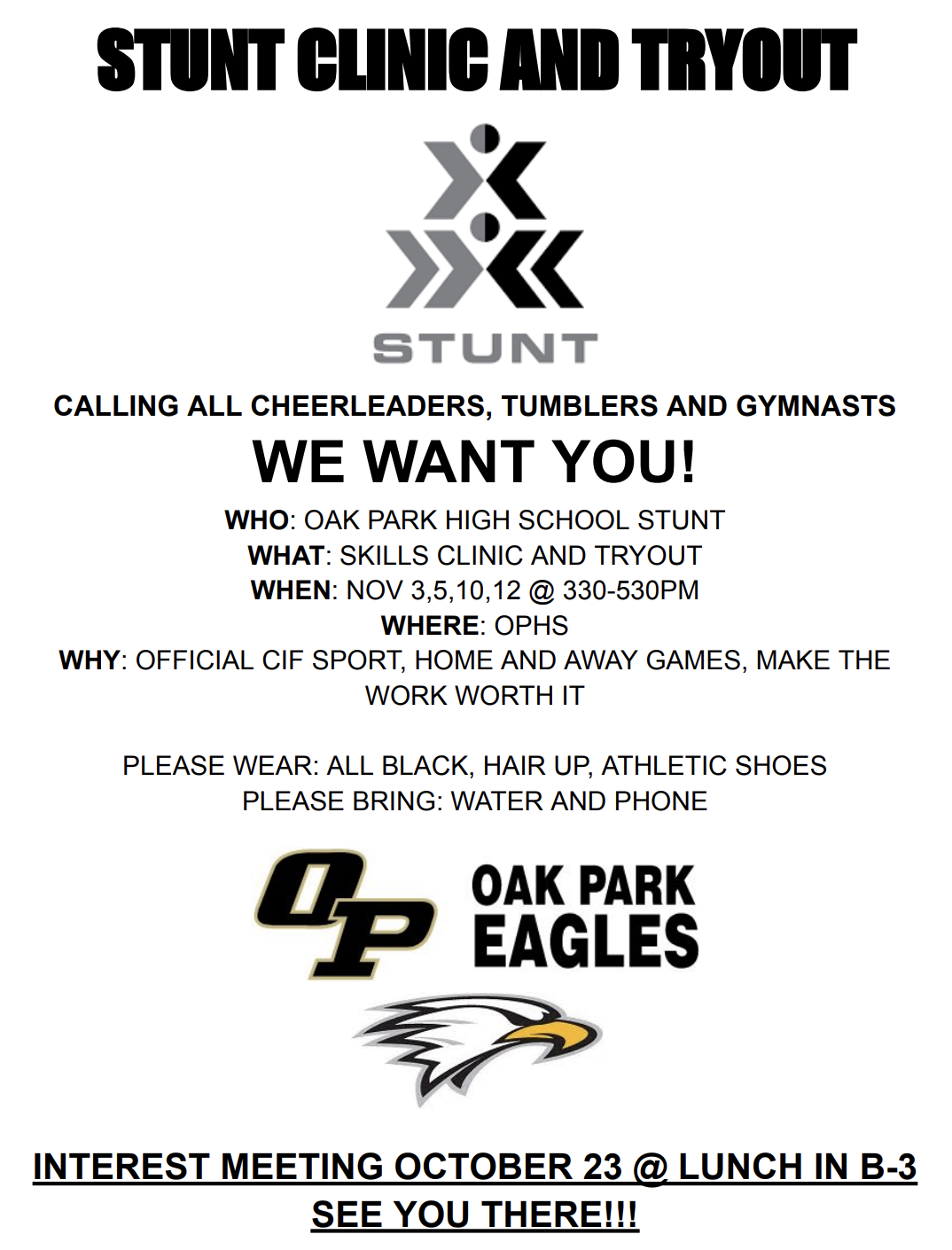 STUNT TRYOUTS – see flyer below